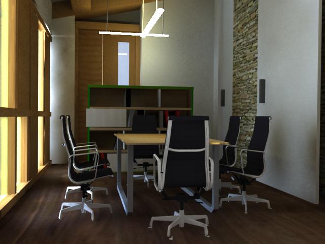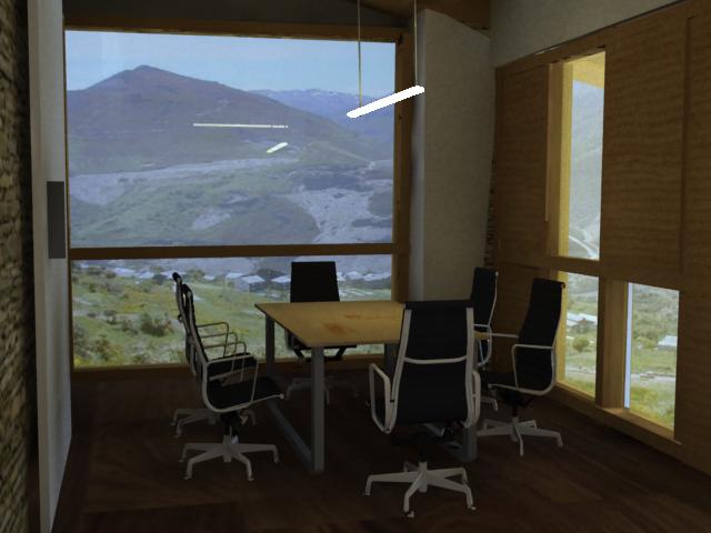 Este proxéctase como espazo interior aberto ao val mediante un peche de vidro e ao alpendre cun cerramento mixto de madeira na súa cara interior e metálica polo exterior formando un sándwich e un vidro. Aquí sitúase a sala de xuntas e un espazo polivalente para proxeccións ou charlas, separados a través dun mobiliario móbil. Conservamos o acceso existente como privado.