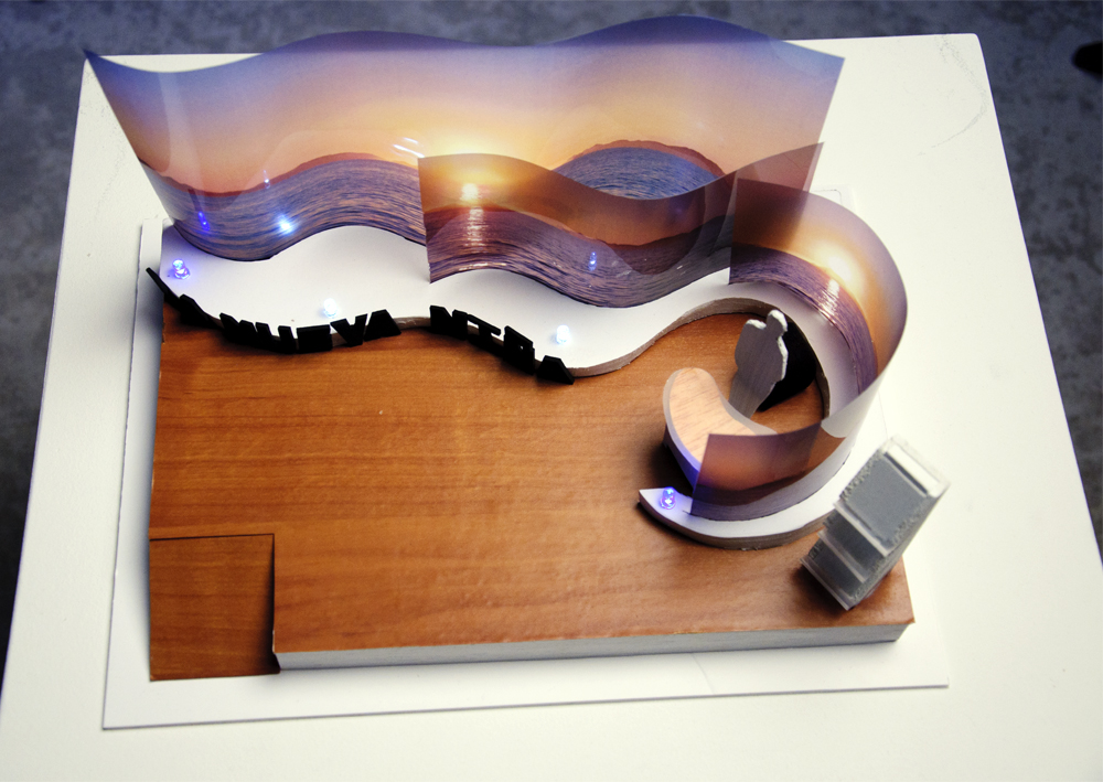 Tomamos como referencia a cita «Quen mira fixamente ao mar, xa está a navegar».O espazo no que se vai intervir formula un espazo aberto e fresco, é de forma rectangular en planta cunha superficie de 24 m² e con tres vías de circulación.Crease un espazo colector de sensacións oceánicas cunha base conceptual de reinterpretación das sensacións que produce a arte da navegación, con carácter dinámico, funcional e poderoso en contidos visuais e auditivos. Estes factores conceptuais reflíctense na estrutura formal do espazo.