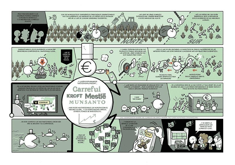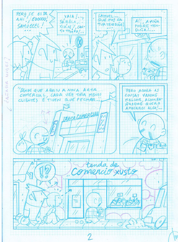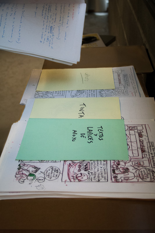 Na súa explicación do proceso creativo, e como bo ex-alumno de aulaD, Iago fixo fincapé nas fases de documentación e análisis como parte fundamental dun proxecto ben cimentado. No caso concreto deste cómic sobre o comercio xusto, despois de documentarse durante unhas tres semanas, toda esa información pasou a tomar forma nunha estructura para o guión na que cada parte da historia debe ter unha mensaxe clara e ben definida. Tamén destacou a importancia de contar co apoio de xente experta na materia co fin de dispor da máxima obxectividade e non deixarse levar por prexuizos ou ideas preconcebidas, tales como que o comercio xusto se poida confundir coa caridade ou pensar que os países empobrecidos son realmente pobres. Neste caso a xente da cooperativa Árbore resultou imprescindible para pulir a historia.