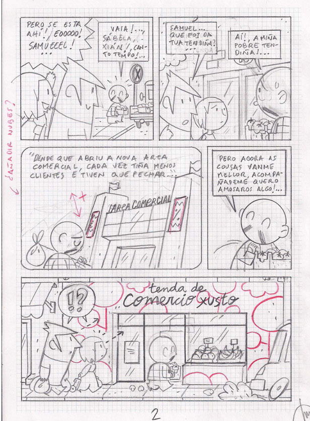 O pasado 30 de abril tivemos a sorte de que o deseñador e debuxante Iago Araujo dera unha charla na nosa escola sobre os puntos chave á hora de realizar un cómic divulgativo e didáctico como o seu marabilloso proxecto ¿Qué é o comercio xusto? , editado en tódolos idiomas da península e distribuido tanto en España coma en Portugal. A ponencia poñía punto final á exposición do seu traballo no espazo polivalente de aula D durante o mes de abril. Nela puidemos apreciar todo o proceso creativo dun cómic dende os primeiros bosquexos ata o resultado final, pasando polas fases de planificación e estructura, guión, creación das personaxes, escaneado, coloreado, maquetación, etc…