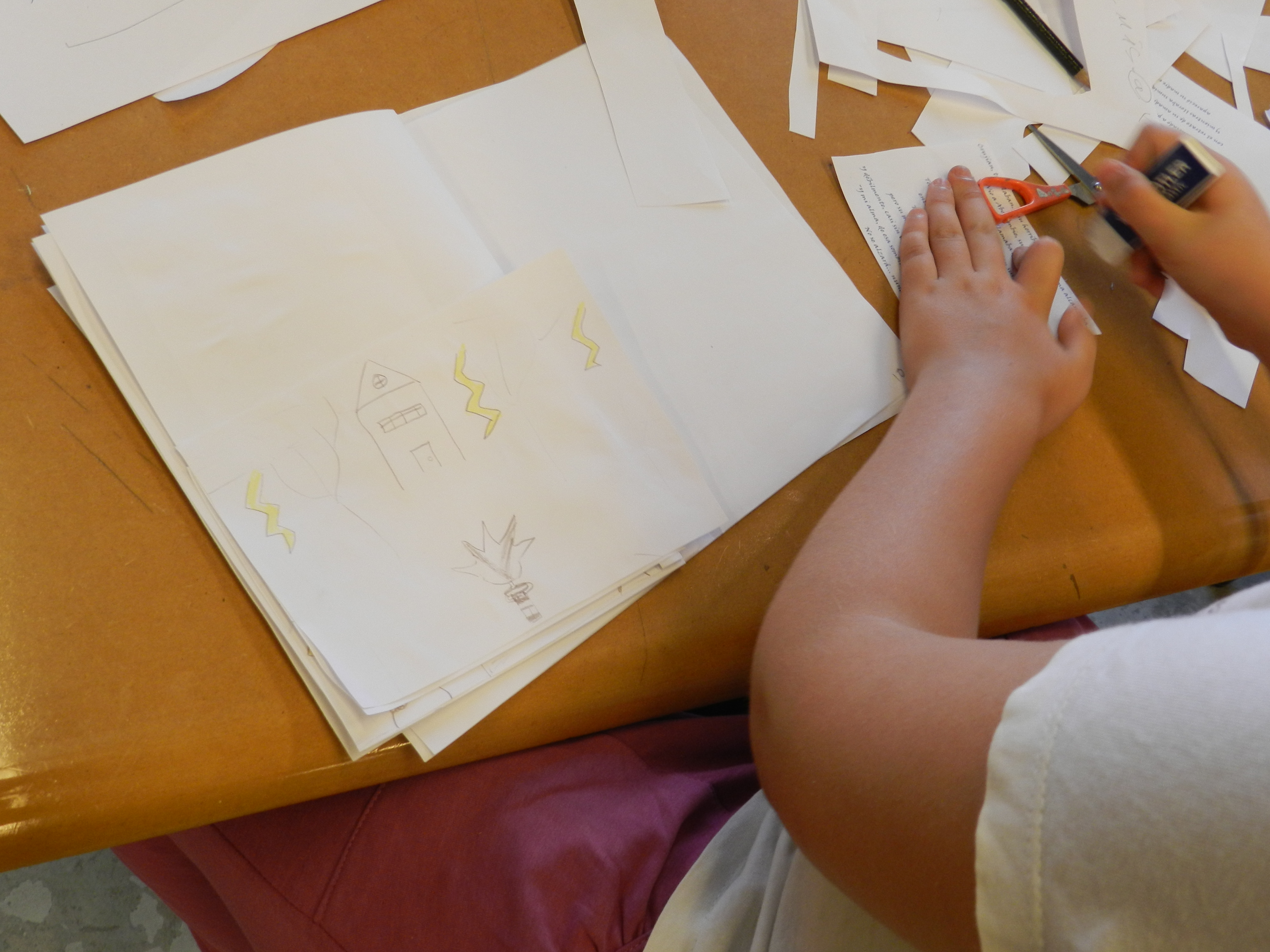 O venres 19 de xullo no obradoiro de encadernación falamos dos rollos de papiro dos exipcios, dos pergaminos, dos códices, da encadernación artesanal, do cartoné, das tapas brandas, do cosido dos libriños, da edición rústica, ……… e da encadernación actual como xeito de presentar o libro. Logo cada nen@ realizou o seu partindo dunha lóxica que lle permitise rematalo coherentemente, coser os libriños, idear as tapas e rematar o conxunto. En definitiva comprender que cada obxecto que utilizamos é como é porque antes foi deseñado.