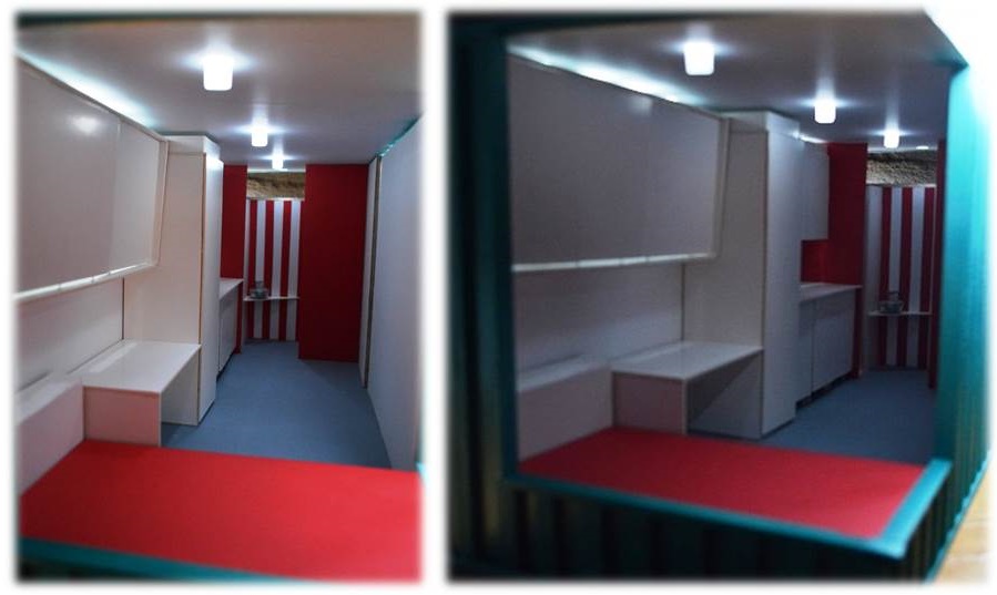O alumnado do primeiro curso de Proxectos e Dirección de Obras de Decoración realizou unha maqueta, á escala 1:10, dun colector convertido en cabana, segundo o deseño da alumna Sara Parada. O feito de traballar nunha escala grande permitiu representar o mobiliario dun xeito realista dende o punto de vista constructivo, interpretando espesores, aperturas de portas, interior dos mobles … Tamén a iluminación artificial reprodúcese a partires dos buratos, con difusor, practicados na cuberta do colector .