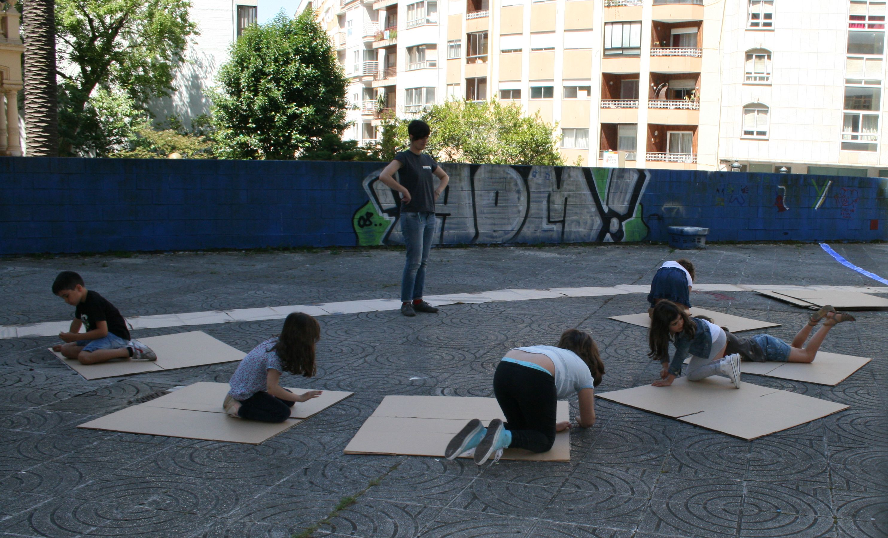 O día 25 de xuño amanecía soleado e caluroso. A praza na que se encontra Aula D estaba preparada para acoller a Cidade ideada pola arquitecta Iria Sobrino Fagilde e o seu equipo de pequenos urbanistas para os que tiña preparada a seguinte actividade.